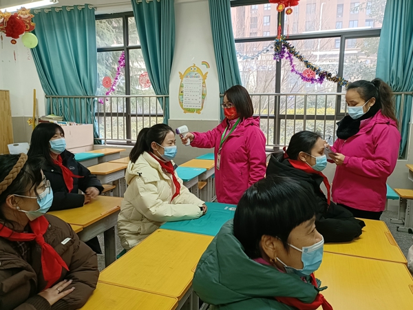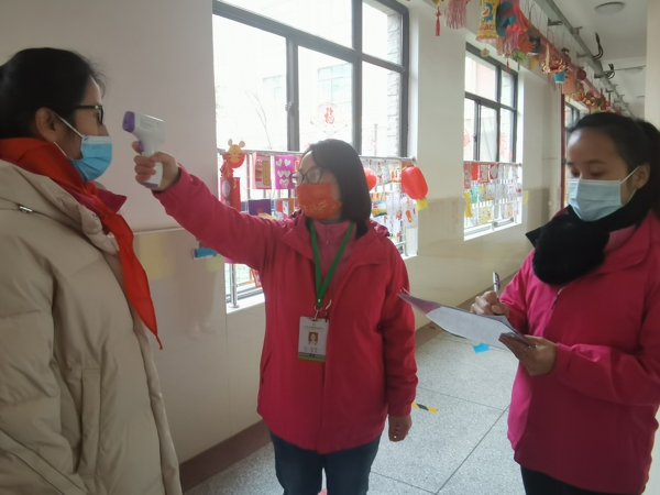 把好入校第一關(guān)是有效切斷病毒來源的重要一環(huán)。為避免上下學(xué)期間發(fā)生擁堵,學(xué)校將實(shí)行錯(cuò)時(shí)上下學(xué)制度,并告知家長按時(shí)到指定位置接送學(xué)生。入校前,學(xué)生在等候區(qū)四路縱隊(duì),按照1.5米間距有序站立。進(jìn)校時(shí),在網(wǎng)格值班組成員和班主任引導(dǎo)下,依次以兩路縱隊(duì)從測溫通道入校。體溫檢測正常方可進(jìn)入校園。檢測時(shí)如發(fā)現(xiàn)體溫異常學(xué)生,校醫(yī)來老師對其進(jìn)行復(fù)檢后發(fā)現(xiàn)體溫仍異常,立即引導(dǎo)學(xué)生到隔離室留觀,逐級上報(bào)并啟動(dòng)應(yīng)急預(yù)案。