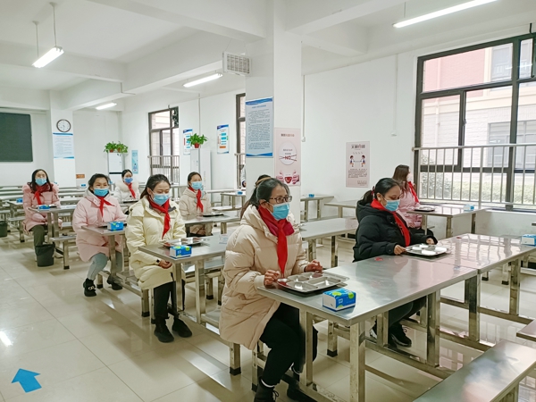 學(xué)校各年級實(shí)施錯(cuò)時(shí)下課、錯(cuò)時(shí)就餐,最大程度減少人員聚集。中午放學(xué)后,班主任引導(dǎo)學(xué)生餐前、餐后要正確洗手、消毒,確保清潔。按照規(guī)定的班級次序及規(guī)定路線,排隊(duì)到達(dá)餐廳,進(jìn)入餐廳前班與班之間的間隔不少于3米。打飯時(shí),學(xué)生按照1.5米間距站隊(duì)。打飯后,學(xué)生按照餐桌紅色標(biāo)簽,單人單桌全部面向西面就坐。就餐時(shí),期間不說話、不交流,不浪費(fèi)糧食,做到光盤。就餐結(jié)束,立即佩戴口罩,學(xué)生在正副班的帶領(lǐng)下有序按固定路線返回教室。學(xué)生所用餐具由餐廳人員統(tǒng)一清洗、紅外線高溫消毒。