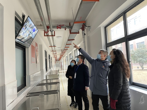 在校長曹建峰、副校長范書莉的陪同下,鄭州市中小學校責任督導王慧和田言輝檢查了學校疫情防控、食品安全、“雙減”“五項管理”落實情況、學校安全管理工作情況、以及環(huán)境整治情況等方面,深入教學樓的教室、辦公室、功能室等重點區(qū)域查看了通風消毒、物資儲備、消殺記錄等情況。同時,督導組深入廚房對學校食堂食品原料進貨查驗、操作間環(huán)境衛(wèi)生、學生餐具清洗消毒、就餐環(huán)境防疫措施落實以及從業(yè)人員健康管理等情況進行全面檢查,詳細了解了學校了學校食品安全建設。最后督導組在黨建室對學校的“雙減政策”和“五項管理”工作落實情況進行了全面、深入、細致的視導,并進行了座談調(diào)研,了解了紫東路小學各項“雙減”工作的開展情況,針對存在的問題提出了整改意見。在實地檢查和聽取匯報后,督導組對學校開學工作給予了充分肯定和高度評價,并對學校后續(xù)工作提出了建議:學校要進一步落實落細防控措施,看好門、盯好人、管好事,堅決將病毒阻擋在校園之外,要真正落實“雙減”“五項管理”政策,讓每一個學生平安、健康成長。