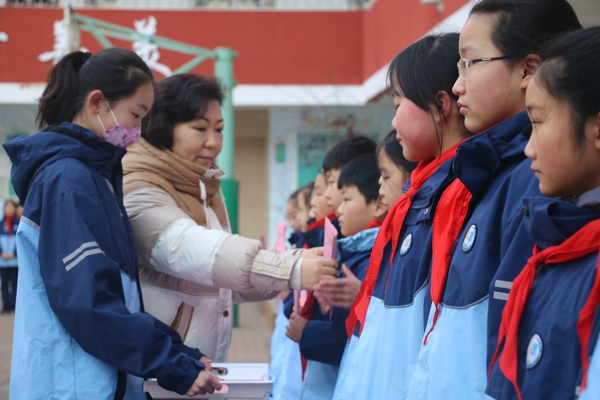 儀式上,校領(lǐng)導(dǎo)為榮獲寒假作業(yè)小標(biāo)兵榮譽(yù)稱號的隊(duì)員頒發(fā)了榮譽(yù)證書并號召全體少先隊(duì)員向他們學(xué)習(xí),獲獎代表也分別分享了自己的收獲和夢想。
