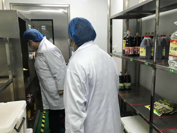 檢查組在學(xué)校領(lǐng)導(dǎo)的陪同下穿戴好一次性防塵鞋套、帽子和防塵服后,首先查閱了食堂食品經(jīng)營(yíng)許可證、從業(yè)人員健康證、餐飲具消毒記錄、進(jìn)貨臺(tái)賬等各項(xiàng)資料;緊接著進(jìn)入食堂各個(gè)操作間,現(xiàn)場(chǎng)檢查留樣記錄、倉(cāng)庫(kù)食品的保質(zhì)期等。同時(shí),要求食堂從業(yè)人員嚴(yán)格落實(shí)食品安全管理各項(xiàng)規(guī)章制度,對(duì)加工場(chǎng)所、餐飲具、廚具等進(jìn)行及時(shí)清洗消毒,對(duì)食品存儲(chǔ)、消毒設(shè)備設(shè)施加強(qiáng)維護(hù)檢查,切實(shí)保障師生飲食安全。王錫濤所長(zhǎng)強(qiáng)調(diào),新學(xué)期開學(xué),學(xué)校食堂從業(yè)人員要提升食品安全責(zé)任意識(shí),嚴(yán)格落實(shí)食品安全主體責(zé)任,履職盡責(zé)把好食品安全監(jiān)管的每道關(guān)口,確保讓師生吃的營(yíng)養(yǎng)、吃的安全,讓廣大家長(zhǎng)安心、放心。