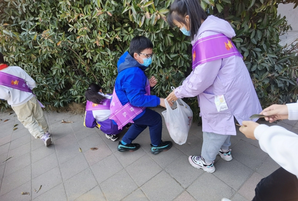 少先隊(duì)員們走出教室,撿起每片紙屑、垃圾,用自己的實(shí)際行動(dòng)美化校園。
