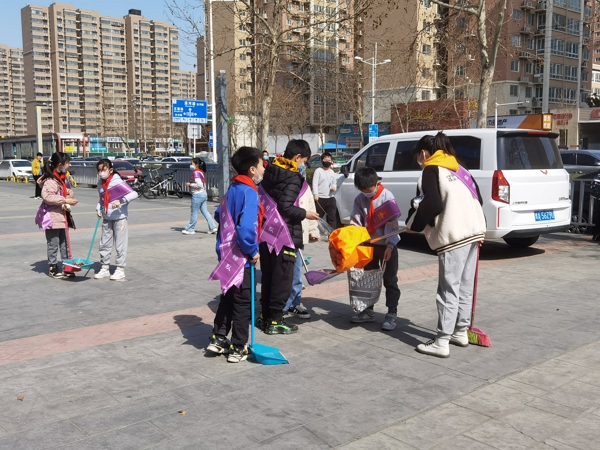 之后,同學(xué)們又走進(jìn)街道、廣場等公共場所進(jìn)行“學(xué)雷鋒、進(jìn)社區(qū)、進(jìn)街道”志愿服務(wù)活動(dòng),同學(xué)們幫助環(huán)衛(wèi)工人清掃廣場和街道上的煙頭、樹葉,擦拭街道兩旁的圍欄、廣告牌。