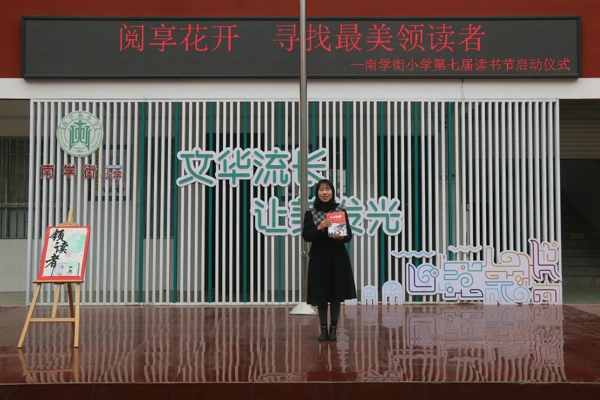 分享結(jié)束,該校教導(dǎo)處副主任姚朝英向全體師生詳細(xì)介紹了此次閱讀節(jié)活動流程。姚朝英表示,本次的讀書節(jié)共分為三部分,分別為:“我是班級最美領(lǐng)讀者”,同學(xué)們可以采用自己領(lǐng)讀或邀請同學(xué)、老師、家長參與班內(nèi)領(lǐng)讀,推薦優(yōu)秀領(lǐng)讀者參與校級活動;“我是學(xué)校最美領(lǐng)讀者”,以班級為單位,參加每天的“領(lǐng)讀者之聲”活動;“閱享花開,尋找最美領(lǐng)讀者”,主要進(jìn)行閱讀節(jié)活動的成果展示和表彰,由語文老師結(jié)合各年級的“快樂讀書吧”進(jìn)行設(shè)計(jì)和準(zhǔn)備。