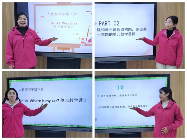 “單元疑彩課堂”教學設計分享環(huán)節(jié),老師們根據抽到的教材模塊和具體單元,現場完成教學設計,并逐一進行分享交流。解讀國家課程標準,對應學科核心素養(yǎng),建構課程結構,提出單元大觀念,制定學習目標與評價標準,統(tǒng)籌單元與課時學習任務,創(chuàng)設真實生活情境,優(yōu)化作業(yè)設計,強化口語表達與書面習作的協(xié)同,體現“教—學—評”一致性,落實學生為本、學習高效,指向語言能力和思維品質的培養(yǎng)。不同教師對于教學設計有不同的思考,形成不同的特色和亮點,極大激發(fā)了大家的研討興趣,在交流碰撞中衍生出新的智慧。