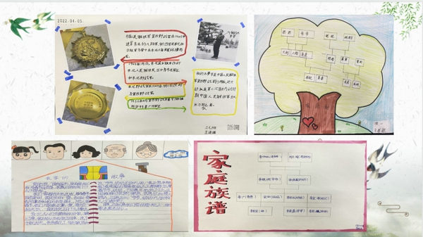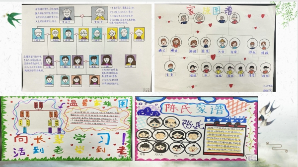 三四年級的太陽花們通過了解家庭成員,搜集家族故事,用畫筆畫出自己家庭的圖譜。一幅幅極具特色的作品在他們筆下呈現(xiàn),也讓孩子們在清明時節(jié)增進了家庭成員之間的感情,將家族優(yōu)良傳統(tǒng)懷融于心。