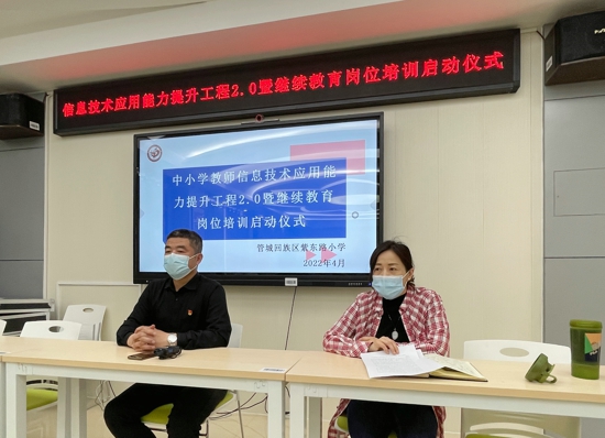 中新河南網(wǎng)4月7日電(吳勇強(qiáng))為推進(jìn)學(xué)校信息化教學(xué)水平整體發(fā)展,構(gòu)建教師信息技術(shù)創(chuàng)新應(yīng)用支持發(fā)展體系,提升教師信息技術(shù)應(yīng)用能力,2022年4月7日,鄭州市管城回族區(qū)紫東路小學(xué)舉行信息技術(shù)應(yīng)用能力提升工程2.0暨繼續(xù)教育崗位培訓(xùn)啟動(dòng)儀式。