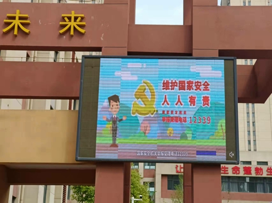 學(xué)校利用校園顯示屏進(jìn)行國家安全宣傳教育,結(jié)合周一升旗儀式向全體師生進(jìn)行《維護(hù)國家安全人人有責(zé)》的講話,增強(qiáng)師生安全意識,引領(lǐng)師生自覺履行維護(hù)國家安全,保守國家秘密的義務(wù)。