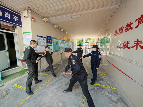 學(xué)校保安、巡防隊員聯(lián)合開展防暴恐演練