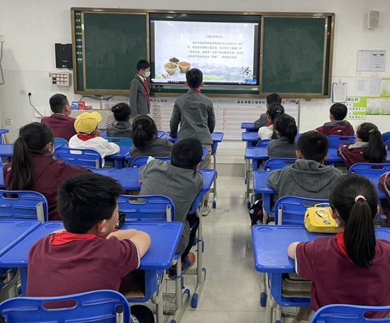 “谷雨谷雨,采茶對雨。”谷雨時節(jié)溫度適中,雨量充沛,茶樹芽葉肥碩柔軟,此時采摘的春茶滋味鮮活、香氣怡人。三四年級的“太陽花”們在主題隊會課上認(rèn)真聆聽班主任講解谷雨茶的來歷,學(xué)習(xí)中國茶文化起源、茶的功效、茶禮儀和品茶的傳統(tǒng)步驟。