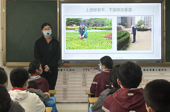 “谷雨”即“雨生百谷”之意,谷雨時節(jié),秧苗初插、作物新種,校園的綠植也愈發(fā)顯得生機勃勃。借此時節(jié),五六年級的班主任在隊會課上給“石榴果”們講解了植物養(yǎng)護(hù)與園藝修剪的知識。