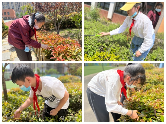 午餐后的課程可謂豐富多彩。“石榴果”們在老師的帶領(lǐng)下對校園的綠植進(jìn)行松土、修剪。他們采用回縮修剪法使植物枝干粗壯,用實際行動悉心養(yǎng)護(hù)花草樹木。