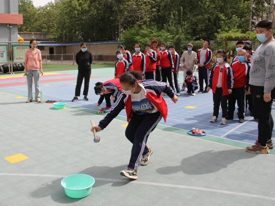 “沙包游戲”為不同年級的同學(xué)量身定做,考驗了低年級同學(xué)的身體協(xié)調(diào)能力和高年級同學(xué)的精細動作能力。“瞄準(zhǔn),發(fā)射……”小運動員們的精準(zhǔn)投射引起了陣陣歡呼。高年級運動員拿著鼓槌小心翼翼地把沙包從這個筐夾在另一個筐,動作熟練流暢,大家屏氣凝神,看地津津有味。
