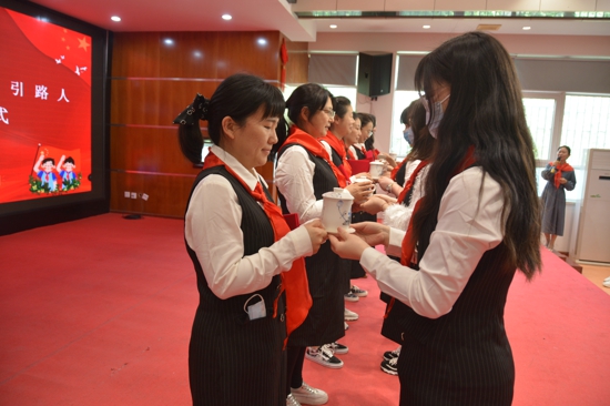 要想快速成長(zhǎng),榜樣引領(lǐng)、示范指導(dǎo)不可或缺。為了發(fā)揮優(yōu)秀輔導(dǎo)員的輻射作用,讓少先隊(duì)之花開(kāi)得更加燦爛,學(xué)校特別聘請(qǐng)肖利曉等6名少先隊(duì)中隊(duì)輔導(dǎo)員為“青年少先隊(duì)輔導(dǎo)員成長(zhǎng)營(yíng)”特聘導(dǎo)師,作為師傅,引領(lǐng)徒弟開(kāi)展各項(xiàng)少先隊(duì)工作。少工委副主任李慶欣為她們頒發(fā)聘書(shū),接過(guò)聘書(shū),師傅代表肖利曉說(shuō)到:“我手上拿著的可不只是一紙書(shū)文,更多的是沉甸甸的擔(dān)當(dāng)與責(zé)任,我們作為師傅將盡心盡力,幫助青年少先隊(duì)輔導(dǎo)員快速成長(zhǎng)”。在“牽手共成長(zhǎng)當(dāng)好引路人”師徒結(jié)對(duì)環(huán)節(jié),六位師傅接過(guò)徒弟獻(xiàn)上的茶水,高興和欣喜洋溢在臉上,眼神中充滿(mǎn)期待。這不僅是杯茶,更是徒弟虛心求教、潛心學(xué)習(xí)的一種信念。范甜甜作為青年少先隊(duì)輔導(dǎo)員代表,莊嚴(yán)承諾,在之后各期成長(zhǎng)營(yíng)活動(dòng)中,將嚴(yán)格要求自己,以學(xué)習(xí)促提升,以交流促成長(zhǎng),和師傅、同伴一起共謀少先隊(duì)發(fā)展,共劃少先隊(duì)活動(dòng),共育祖國(guó)未來(lái)。