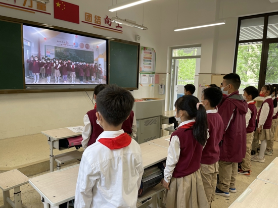 首先,全體師生莊嚴(yán)肅穆,齊聲高唱《義勇軍進(jìn)行曲》、《歌唱祖國》,同學(xué)們個(gè)個(gè)著裝整潔,佩戴著鮮艷的紅領(lǐng)巾,精神飽滿,神采奕奕,體現(xiàn)學(xué)生的良好風(fēng)采,表達(dá)了對(duì)祖國的熱愛之情。接著,黨員教師陳雨馨為大家分享本周團(tuán)結(jié)心向黨微課程《向警予的故事》,全體學(xué)生認(rèn)真聆聽,炙熱的眼神中透露出對(duì)革命先烈的崇拜敬仰之情,對(duì)愛國精神有了更深的理解。最后,二年級(jí)三班的同學(xué)為大家?guī)砹艘曨l短片《勞動(dòng)最光榮》,同學(xué)們通過舞蹈表演表達(dá)了對(duì)勞動(dòng)者的尊敬,每一位勞動(dòng)者用勤勞的雙手和智慧,編織了這個(gè)五彩班斕的世界,創(chuàng)造了人類的文明。