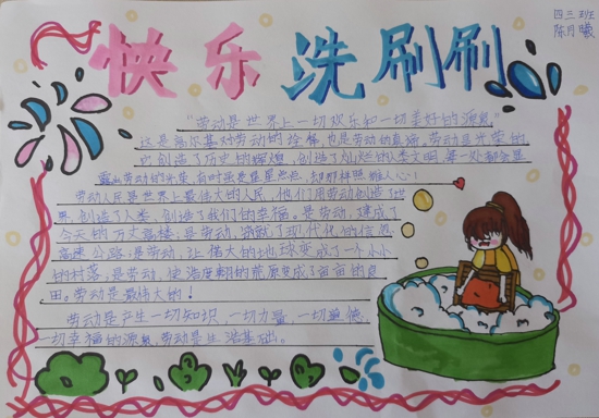同學們在網課學習之余,還當起了“家務小能手”,做自己力所能及的家務勞動,各盡所能,各盡所職干好自己的活兒。經過學校的前期安排部署,三四年級同學們以“快樂洗刷刷”為主題,感受勞動的快樂。瞧,同學們認真洗衣服的模樣可真美!在刷子的揮舞下,書包和鞋子也煥然一新,變了模樣?粗约旱膭趧映晒,孩子們臉上綻放出滿意的笑容。除此之外,同學們還將自己的勞動體會以手抄報形式呈現出來,精彩連連。通過快樂洗刷刷主題活動,同學們不但體會到了勞動的樂趣,而且還感受到了父母的辛勞。