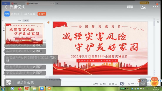 升旗儀式上,黨支部副書記朱玉興強(qiáng)調(diào):5月12日為每年的防災(zāi)減災(zāi)日,今年的5月7日至13日是全國(guó)防災(zāi)減災(zāi)宣傳周,主題是“減輕災(zāi)害風(fēng)險(xiǎn),守護(hù)美好家園”,同時(shí)向孩子們介紹了主要災(zāi)害有哪些,使孩子們學(xué)到很多有用的知識(shí),對(duì)防災(zāi)減災(zāi)有了更深一步的了解。