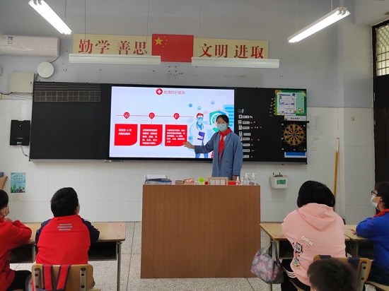 復(fù)學(xué)第一課,各班級召開防疫主題隊(duì)會(huì),讓學(xué)生們再次全面了解疫情相關(guān)知識(shí)和防護(hù)措施,做好心理健康教育。