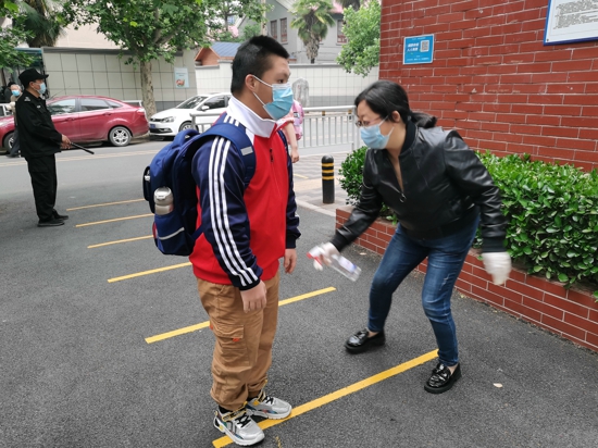 一大早,學(xué)校值班領(lǐng)導(dǎo)和行政組成員在學(xué)校門口集合,分工協(xié)作,迎接學(xué)生入校。全校師生進(jìn)入校園保持“兩米線”距離,嚴(yán)格執(zhí)行“測溫、驗(yàn)碼、戴口罩”防疫三要素,師生上交健康承諾書和返校前連續(xù)14天的健康狀況記錄表,學(xué)校并對學(xué)生所帶物品進(jìn)行消毒,經(jīng)過一系列防疫措施后,學(xué)生方可進(jìn)入校園,其他外來人員一律不得入校。