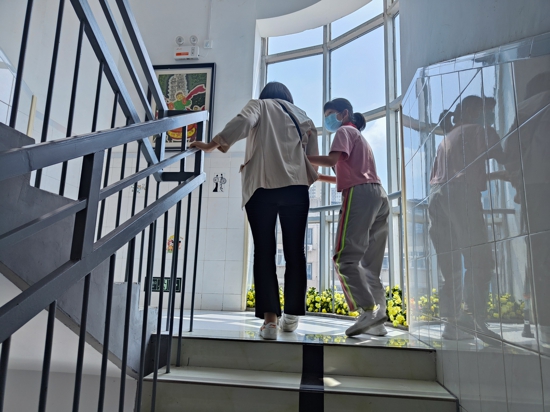 鄭州市中原區(qū)百花藝術小學這位“單腳”女教師帶傷堅持工作
