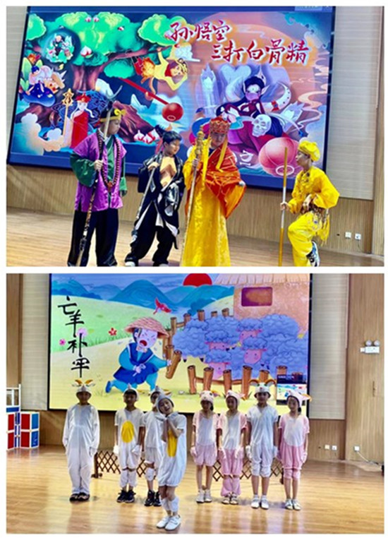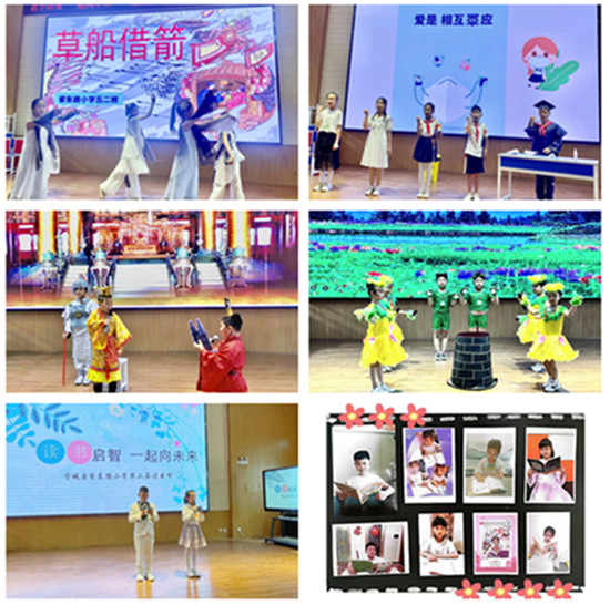 動(dòng)態(tài)活動(dòng)展示以班級(jí)為單位,全校共有23個(gè)班級(jí)參加。各班表演的內(nèi)容豐富多彩,形式不拘一格,有一年級(jí)的兒歌童謠表演《中華孝道》、《聽(tīng)我說(shuō)》、《孫悟空打妖怪》、《二十四節(jié)氣歌》、《一年級(jí)》;二年級(jí)的童話(huà)故事課本劇表演《七色花》、《蜘蛛開(kāi)店》、《坐井觀天》、《小馬過(guò)河》、《大象的耳朵》;三年級(jí)的寓言故事課本劇表演《鄭人買(mǎi)履》、《守株待兔》、《濫竽充數(shù)》、《陶罐和鐵罐》、《自相矛盾》、《亡羊補(bǔ)牢》;四年級(jí)的科普故事課本劇表演《用心抗議你我同行》《垃圾分類(lèi)家園更美》《有一個(gè)星球叫地球》《只有一個(gè)地球》;五年級(jí)的名著節(jié)選課本劇表演《三打白骨精》、《草船借箭》《紅樓春趣》等等。從內(nèi)容的篩選、劇情的編排,到道具的準(zhǔn)備、集體的融合,各個(gè)班級(jí)都精心準(zhǔn)備,令人耳目一新,給大家?guī)?lái)了一場(chǎng)精彩紛呈的演出,這場(chǎng)精彩的表演為讀書(shū)節(jié)添加色彩,給在場(chǎng)師生帶來(lái)了一場(chǎng)視覺(jué)和聽(tīng)覺(jué)上的盛宴。