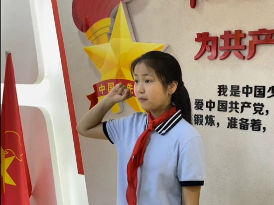車婉玉同學(xué)帶領(lǐng)新隊員宣誓