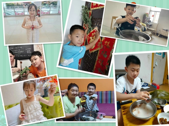 此外,在學校的倡議下,隊員們紛紛在家中跟長輩學習包粽子、插艾葉、做香囊。一雙雙巧手或忙碌穿梭在一張張粽葉間;或?qū)⒁恍┲兴幉姆湃胂隳抑,戴在身上,防蟲驅(qū)蚊,預防疾;或?qū)⒉蓙淼陌~插在門上,以防蚊蟲,辟邪祛病。雖然孩子們的動作不那么嫻熟,作品也不那么美觀,但這卻培養(yǎng)了他們的勞動觀念。