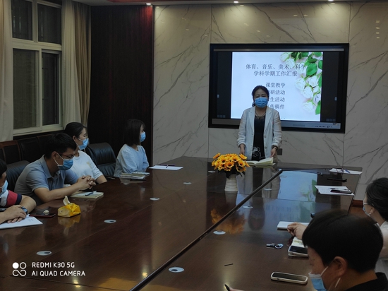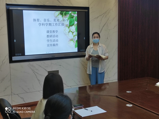 匯報中,體育組郭黃玉、音樂組郭蕓、美術組連麗、科學組盧萍萍等四位老師分別結合本學科課堂教學中的優(yōu)缺點、每周教研活動的成效、學生參與課堂教學的活動及學科教學成果的展示情況等四個方面進行了詳細介紹。多彩的課間操、動聽的班級合唱、六年級繪畫畢業(yè)展、奇思妙想的手工小制作,美妙的旋律,無不表達著同學們對生活的熱愛;一件件精美的作品,凝聚著老師和學生們的心血。