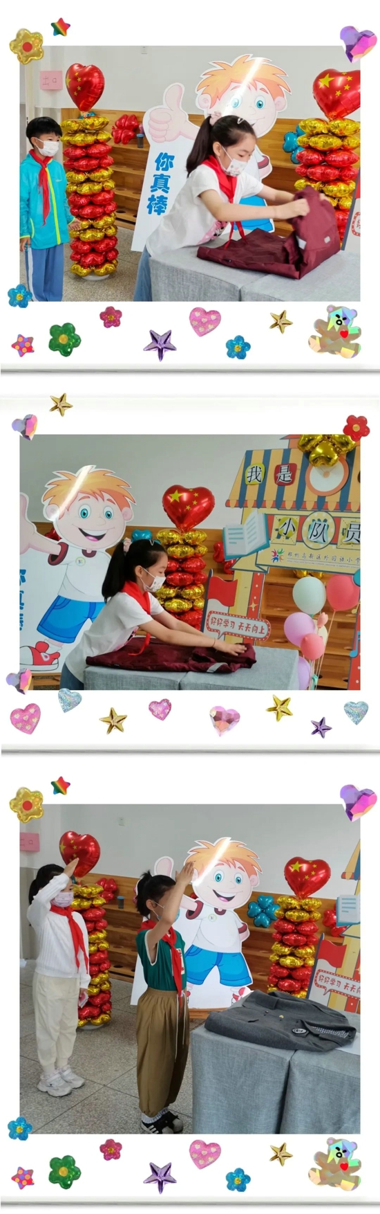 看這邊!小嫩芽們把校服疊得多整齊,整理好儀容儀表的他們,還用標(biāo)準(zhǔn)的隊(duì)禮表達(dá)自己對(duì)中國(guó)少年先鋒隊(duì)的無(wú)限崇敬。