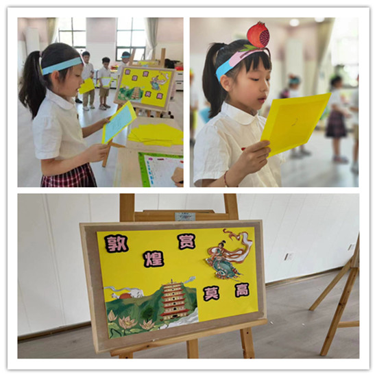 想要走進這中外聞名的千年歷史寶庫,需要用聲情并茂的朗讀敲開莫高窟的大門。聽,石榴娃娃們鏗鏘有力的朗讀,咬字清晰、停頓得當(dāng),真像一個小小播音員吶!