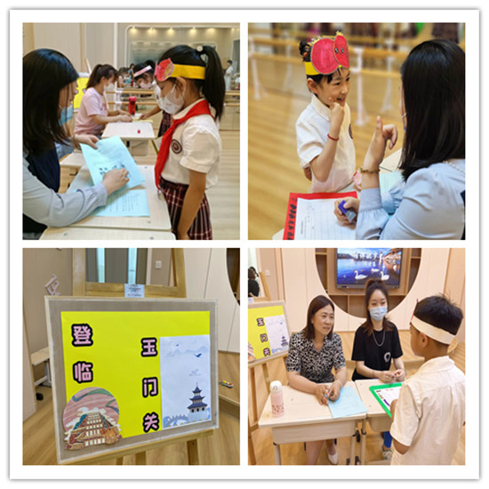 語文教研組老師精心設(shè)置評價情境,引領(lǐng)學(xué)生以“游園會”的形式漫游絲路,游覽的五個站點分別對應(yīng):識字寫字、背誦、朗讀、課外閱讀、口語交際。