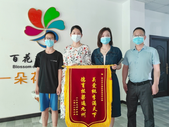 鄭州中原區(qū)百花藝術(shù)小學(xué):用心育人暖人心 家長(zhǎng)感恩送錦旗
