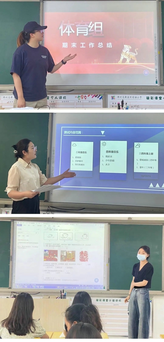 體育組教師林鳴歌針對(duì)課堂教學(xué)、學(xué)生訓(xùn)練、教師素養(yǎng)、發(fā)展愿景4項(xiàng)內(nèi)容進(jìn)行專題分享;音樂組教師劉田青表示要扎實(shí)落實(shí)教學(xué)工作計(jì)劃,聚焦藝術(shù)審美素養(yǎng),擴(kuò)充優(yōu)質(zhì)教育資源,提升音樂教學(xué)品質(zhì);美術(shù)組教師王萌雅交流分享自己在課堂教學(xué)上關(guān)于常規(guī)教學(xué)、學(xué)生素質(zhì)培養(yǎng)、課堂組織方式等方面的優(yōu)秀做法,信心滿滿要在提升中再創(chuàng)佳績。