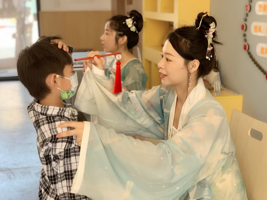 瞧!這里真熱鬧!在“朱砂啟智”場前,老師們用心為每一位小嫩芽的額頭正中點(diǎn)上紅“痣”,祝福小嫩芽們?cè)谕庑∵@片沃土上,能夠茁壯成長,早日成為有責(zé)任、能自主、善創(chuàng)新的中國出彩少年!