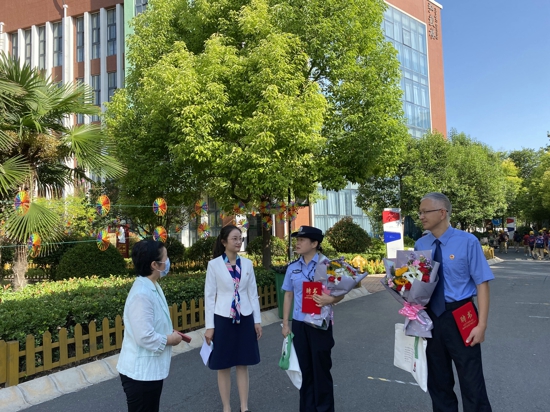 聘任儀式結(jié)束后,兩位法治副校長在安保中心賈喜枝主任的陪同下參觀了校園,并對學(xué)校安全工作進行了指導(dǎo)。袁校長和王校長表示,他們會積極參與外小師生法治教育,協(xié)助學(xué)校進行平安校園建設(shè),加強與學(xué)校的信息交流溝通,建立和完善聯(lián)通、聯(lián)動、聯(lián)辦、聯(lián)防等工作機制,優(yōu)化服務(wù)方式與內(nèi)容,發(fā)揮檢察機關(guān)的法治引航作用,為推進外小法治工作貢獻力量。