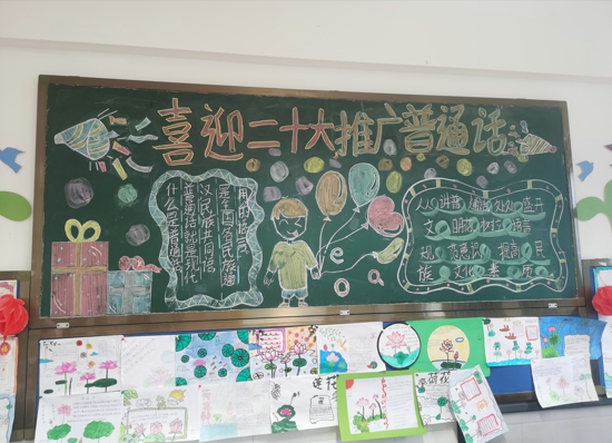 學(xué)校通過利用電子宣傳屏持續(xù)一周展示推廣普通話的宣傳標(biāo)語,同時(shí)通過舉行主題隊(duì)會(huì)、辦推廣普通話的黑板報(bào)、張貼推廣普通話的宣傳畫、舉行演講比賽等活動(dòng)形式,營造了良好的規(guī)范用語和用字氛圍。主題隊(duì)會(huì)上,各中隊(duì)輔導(dǎo)員向隊(duì)員們介紹了全國推廣普通話宣傳周的時(shí)間和由來,講述了規(guī)范語言文字的魅力,并示范了標(biāo)準(zhǔn)發(fā)音,號召大家積極宣傳、使用普通話。隨后,各中隊(duì)又組織少先隊(duì)員座談交流學(xué)習(xí)的感悟。大家暢所欲言,少先隊(duì)員們紛紛表示,作為新時(shí)代的少先隊(duì)員,自己一定要講好普通話,寫好規(guī)范漢字,在學(xué)習(xí)和生活中積極踐行,成為普通話的優(yōu)秀宣傳員,不少隊(duì)員還捧起語文課本,激情澎湃地朗讀起了課文。