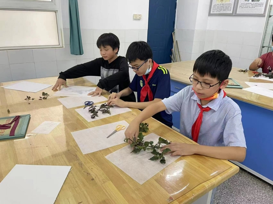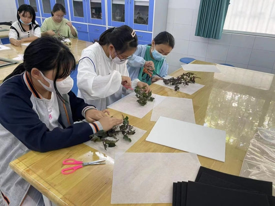 為了進(jìn)一步普及中醫(yī)藥文化,讓全校的同學(xué)都能參與到中醫(yī)文化的傳承中,在學(xué)校德育處的組織下,科學(xué)老師楊培杰帶領(lǐng)同學(xué)們又進(jìn)行了紫蘇標(biāo)本制作活動(dòng)。楊老師向同學(xué)們?cè)敿?xì)的講述著標(biāo)本的制作過(guò)程,同學(xué)們聽(tīng)的非常認(rèn)真并且積極的與老師進(jìn)行互動(dòng)。標(biāo)本制作開始啦,同學(xué)們小組合作,用吸水紙和紙壓板壓制植物標(biāo)本,留住植物最美姿態(tài)。小組之間還不時(shí)的探討,分享各組的優(yōu)秀做法。無(wú)論是寥寥幾片葉子還是植物擺圖,無(wú)不展現(xiàn)他們對(duì)自然的熱愛(ài)、對(duì)中醫(yī)藥文化的熱情,以及獨(dú)特的創(chuàng)造力。