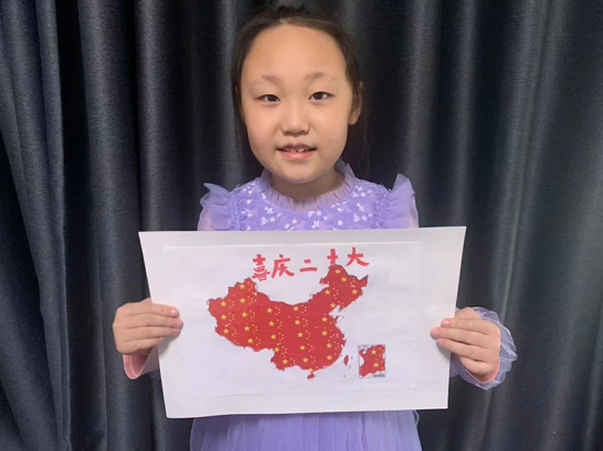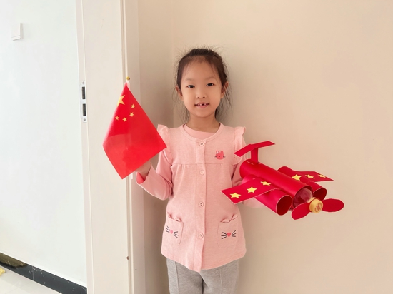 “我用手頭現(xiàn)有材料,用色卡紙制作手工飛機(jī),裝飾上黃色五角星,這樣,一架充滿中國(guó)元素的飛機(jī)就完成了。雖然看上去簡(jiǎn)單,卻包含著我對(duì)祖國(guó)的熱愛。我希望祖國(guó)越來越繁榮昌盛!”三二班的石依諾說到。