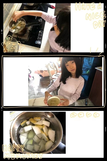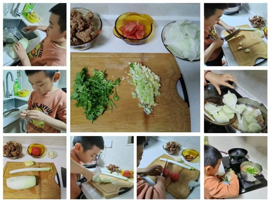 霜降時(shí)節(jié),民間有“補(bǔ)冬不如補(bǔ)霜降”的說(shuō)法,因此霜降有登高遠(yuǎn)眺、吃紅柿、進(jìn)補(bǔ)等習(xí)俗。為了讓學(xué)生充分感受24節(jié)氣的氛圍,紫東路小學(xué)語(yǔ)文組老師結(jié)合勞動(dòng)教育,以“霜降進(jìn)補(bǔ)養(yǎng)生飯”為主題,開(kāi)展特色的烹飪活動(dòng)。同學(xué)們?cè)谡n堂上了解、感知到霜降的相關(guān)知識(shí)后便紛紛拿出看家本領(lǐng),炒菜、燉肉、姜茶等等,各色美食令人垂涎三尺。同時(shí),為讓學(xué)生進(jìn)一步感受霜降節(jié)氣的濃厚氣息,語(yǔ)文組教師還帶領(lǐng)學(xué)生學(xué)習(xí)關(guān)于霜降的手勢(shì)舞,舉手投足間流露出中國(guó)韻味。