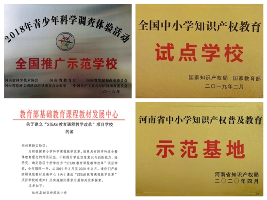 在數(shù)字校園建設與發(fā)展中,不論是理論經(jīng)驗的積累,還是工作實踐的探索,外國語小學都獲得了喜人成績。先后榮獲鄭州市研究性學習先進學校,河南省中小學知識產(chǎn)權(quán)普及教育示范基地、河南省中小學人工智能教育實驗學校、青少年科學調(diào)查體驗活動全國推廣示范學校、全國中小學知識產(chǎn)權(quán)教育試點學校,相關(guān)實踐成果連續(xù)五屆參展中國教育創(chuàng)新成果公益博覽會,被教育部基礎教育課程教材發(fā)展中心確定為“STEAM教育課程教學改革”項目學校。學生參加相關(guān)比賽屢獲佳績,鄭州市中小學生科學運動會金獎,青少年航空航天模型錦標賽鄭州市團體第一名和河南省團體第二名,河南省青少年電子制作錦標賽小學組團體第一名,河南省青少年機器人競賽團隊銀獎等。
