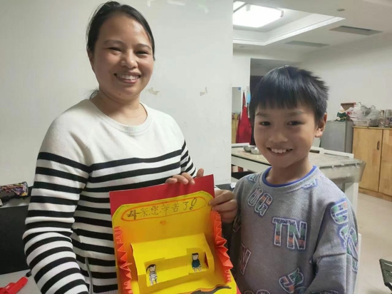 同學(xué)們展示了自己優(yōu)秀的作品以后親手把作品送給了父母,并學(xué)習(xí)感受到了父母平時生活的不易。