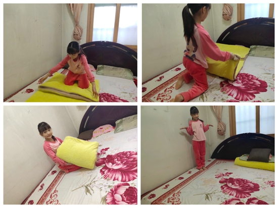 活動中,同學(xué)們積極行動,大家熱情高漲,在家長的指導(dǎo)和協(xié)助下邊學(xué)習(xí)邊實踐。有的同學(xué)動作熟練地將衣服鋪平、翻邊、折疊……整個過程動作嫻熟,一氣呵成,一會兒工夫,一套衣服便整整齊齊地分類疊好了;有的同學(xué)不僅能整理自己的物品,還能用自己勤勞的雙手為家人分憂解勞,創(chuàng)造干凈整潔的環(huán)境。他們不放過家里的每一個角落,以自己的身體力行,使家里煥然一新;顒咏Y(jié)束,同學(xué)們一起展示自己的勞動成果,一起分享勞動的快樂。“通過這次活動,我收獲滿滿,不僅學(xué)會了疊衣服、整理衣柜的生活技巧,更懂得了自己的事情自己做,在今后的生活中,我不僅要做好自己的事情,在家里也要幫助爸爸媽媽做一些力所能及的家務(wù)活,讓我們的家變得更加整潔、更加井然有序。”二一班學(xué)生王藝馨說道。