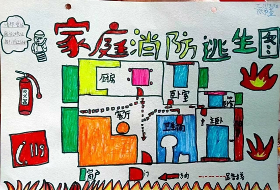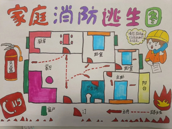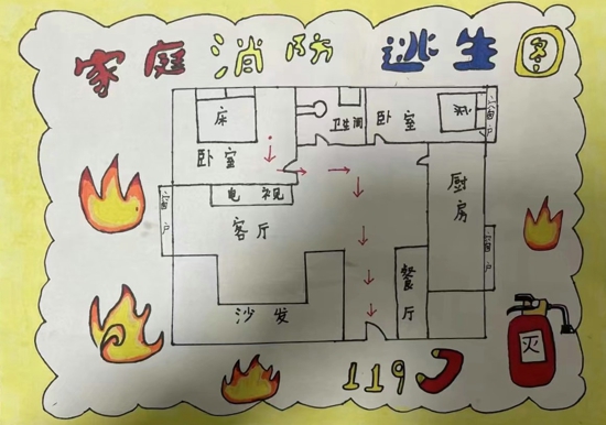 火災(zāi)中的逃生爭(zhēng)分奪秒,如果家里突發(fā)火災(zāi),如何迅速逃離火場(chǎng)?擁有一份熟記于心的家庭逃生路線,顯得至關(guān)重要。為進(jìn)一步培養(yǎng)學(xué)生的安全意識(shí),引導(dǎo)學(xué)生掌握逃生技能,學(xué)校布置了這份特殊的作業(yè):畫(huà)一張家庭消防逃生路線圖。