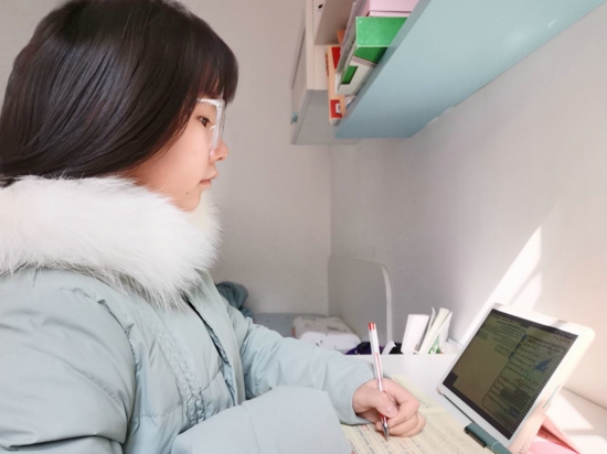“網(wǎng)課學(xué)習(xí)中老師要求更嚴(yán)格,我也要更加認(rèn)真,因?yàn)闀r(shí)間是公平的,知識(shí)的積累是我們?nèi)松母畈拍苋~茂。”唐湫崳這樣說,也是這樣做的。