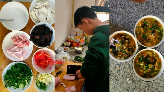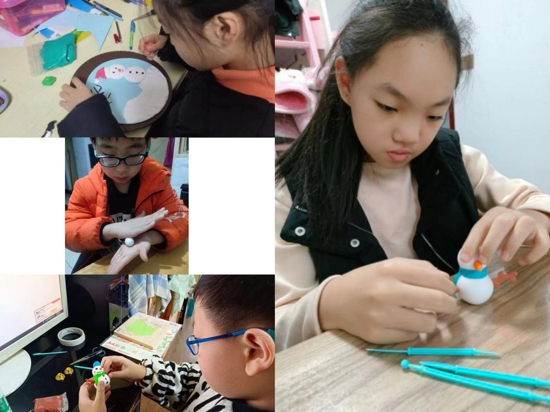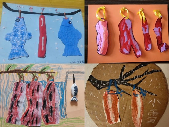 活動中,孩子們在老師的指導帶領下,在家長的幫助下積極參與。語文學科中,孩子們在老師的帶領下探索與小學節(jié)氣有關的詩詞并進行朗誦并制作了小學主題的詩配畫,一起感受那詩韻般的小雪之美;美術學科中,老師給孩子們講述小學節(jié)氣的民俗藝術活動知識并帶領大家一起創(chuàng)作“曬魚干”“黏土雪人”“臘肉拼貼畫”等美術作品,讓孩子們在充分了解節(jié)氣知識的同時豐富美術創(chuàng)作體驗;科學學科則開展了創(chuàng)意實踐給小樹穿衣、冷熱空氣對流、人工造雪等科學小實驗,極大地調(diào)動了孩子們的參與積極性;音樂學科則一起學習節(jié)氣歌、表演手勢舞,感受節(jié)氣的別樣韻味;還有勞動課堂上,各班紛紛開展了做糍粑、做臘肉、刨肉湯等勞動實踐活動,引導孩子們對小學節(jié)氣的勞動活動有了更深一步的了解。