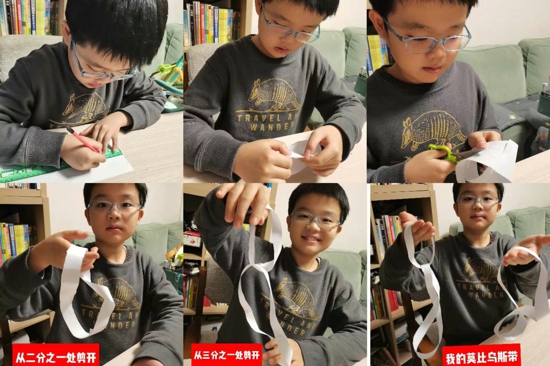 為了更好地培養(yǎng)孩子們學(xué)習(xí)時(shí)鐘知識(shí)的興趣,一年級(jí)開展了“創(chuàng)意鐘面”設(shè)計(jì)等活動(dòng)。“創(chuàng)意鐘面”設(shè)計(jì)活動(dòng)中,孩子們發(fā)揮想象、大膽設(shè)計(jì),利用卡紙、廢棄紙板等物品做成了各式各樣精致的鐘面。讓數(shù)學(xué)在生動(dòng)、活潑、實(shí)踐的操作活動(dòng)中,遠(yuǎn)離枯燥,煥發(fā)光彩。四年級(jí)開展了“莫比烏斯帶的制作與探究”實(shí)踐活動(dòng)。學(xué)生紛紛動(dòng)手制作,捏著一根長(zhǎng)方形紙條的一端,將另一端扭轉(zhuǎn)180°,再首尾粘貼起來(lái),在它的二等分、三等分處剪開會(huì)變成什么樣呢?激發(fā)了學(xué)生探求數(shù)學(xué)知識(shí)的欲望,感受數(shù)學(xué)的神奇所在。