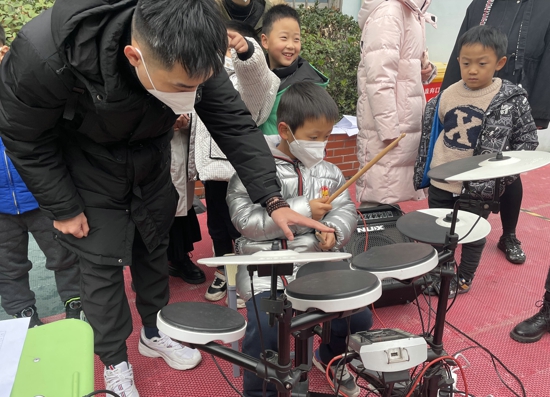 學生體驗架子鼓有模有樣