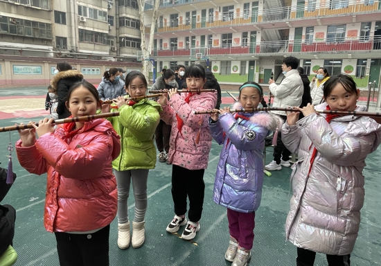 高年級學生現(xiàn)場演奏竹笛
