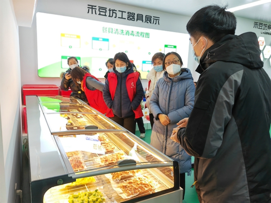 接著,我們又來到我校的衛(wèi)星廚房進行實地考察,仔細審閱了食品原料配送供應合同、檢驗報告及每日進貨臺賬和出入庫驗收記錄,供貨商家的資質以及員工的健康證等相關資料。消毒間、烹飪間、備餐間及庫房監(jiān)控設備等。家長們詳細了解了各功能間布局、衛(wèi)生管理、加工流程、食品留樣、餐具消毒等過程。