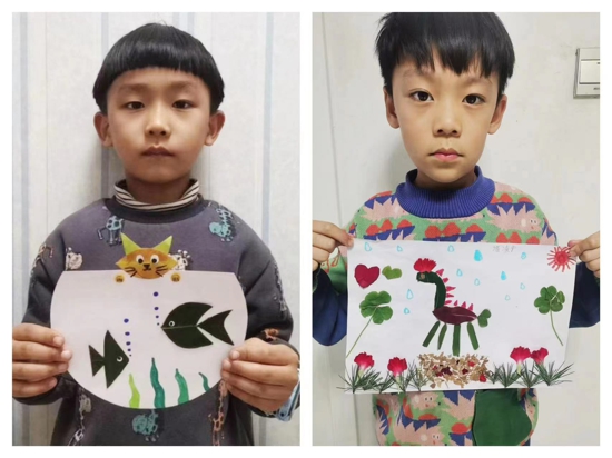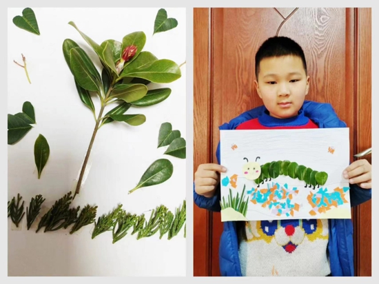 同時(shí),音樂(lè)老師在課堂上也會(huì)給學(xué)生播放與雨水節(jié)氣相關(guān)的音樂(lè),讓學(xué)生在音樂(lè)中感知節(jié)氣。孩子們?cè)诹私狻⒏兄接晁南嚓P(guān)知識(shí)后,便積極動(dòng)手,用樹(shù)葉、畫(huà)筆、彩紙等材料制作樹(shù)葉粘貼畫(huà),記錄著自己眼中的雨水。
